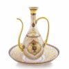 Lotus formunda yükselen Bade Serisi Mumluk, 24 ayar altın tezhipli desenleriyle yanan mumu altın bir hale gibi yansıtan, saray estetiğini mekâna taşıyan el yapımı cam bir objedir.