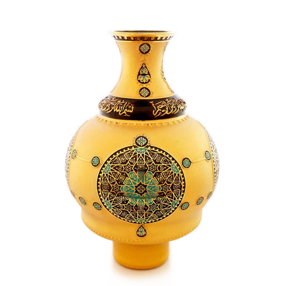 Gövdeyi saran kündekari esintili desenler, 24 ayar altın kullanılarak tamamen el işçiliğiyle uygulanmıştır. Işıkla buluştuğunda altın tonlu yansımalar vazonun hacmini zenginleştirir ve sergilendiği alana sıcak, sofistike bir atmosfer kazandırır.