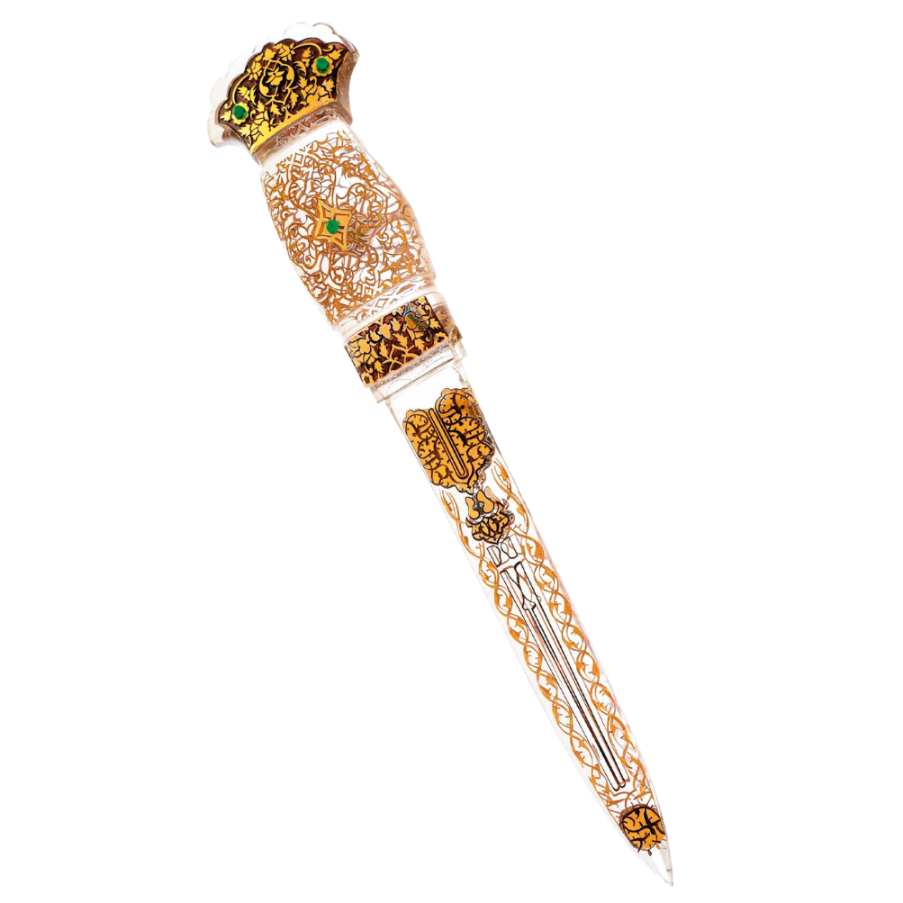 Yavuz Sultan Selim’in 1515 yıllarında savaşta kullandığı hançerden esinlenen “Sultanın Hançeri”, Topkapı Sarayı Müzesi’nin tarihî silah koleksiyonuna zarif bir selam niteliği taşır. Cam gövde üzerine işlenen kıvrımlı dallar ve Rumî motifler, dönemin saray estetiğini günümüze taşıyan güçlü bir görsel dil oluşturur.