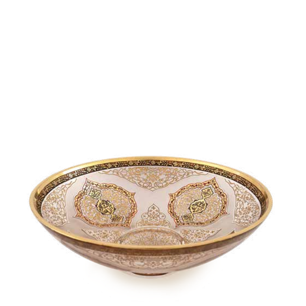 El işçiliği ile işlenen 24 ayar altın detaylar ve organik boyalar, tabak yüzeyine hem derinlik hem de ışıkla birlikte değişen sıcak yansımalar kazandırır. Gerek duvar tabağı olarak, gerekse sehpa ve konsol üzeri sergilemelerde mekânın merkezine sakral bir odak noktası ekler.