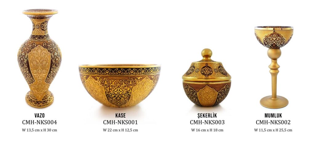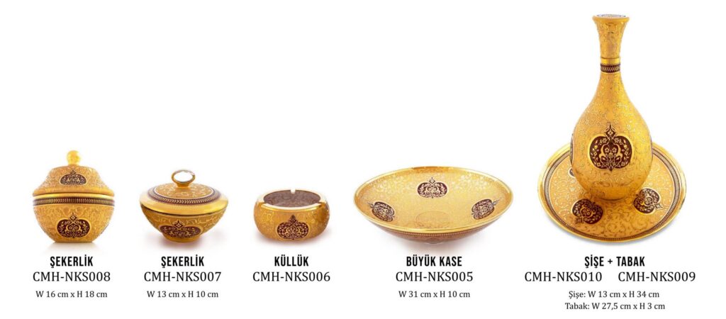 Osmanlı sanatının zengin motiflerinden özel olarak seçilerek tasarlanmış, ürün üzerine yorumlanmış olan desenler, 24 ayar altın kullanılarak tamamen el işçiliği ile sizin için özel olarak sınırlı sayıda üretilmiştir.